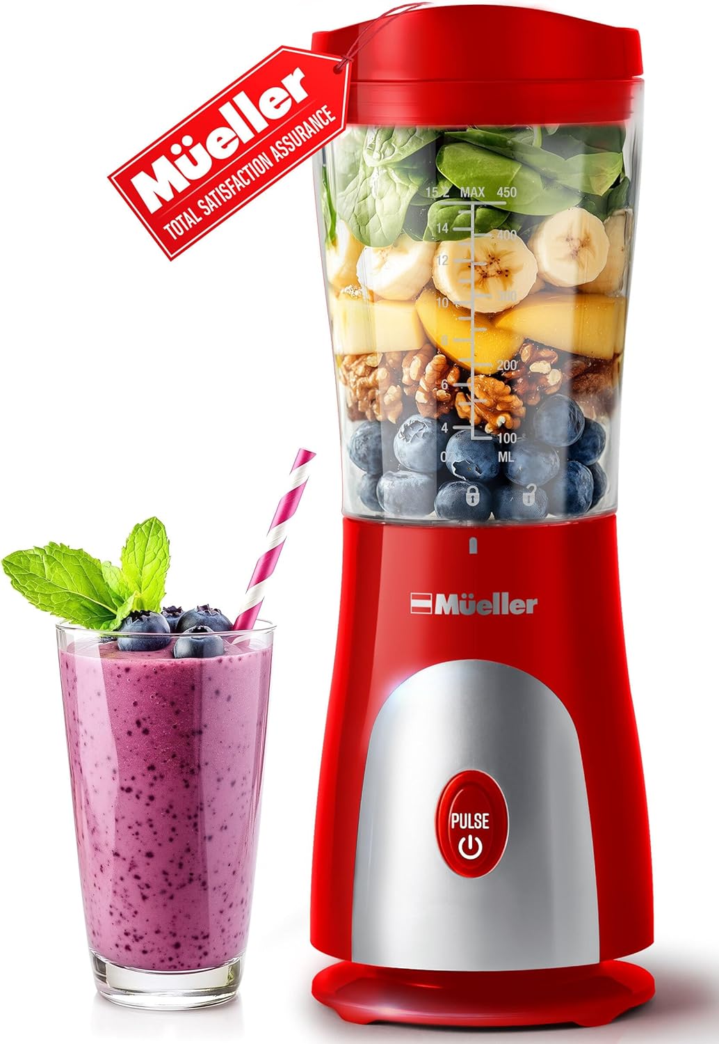 | Product Name | Mueller Personal Blender for Shakes and Smoothies with 15 Oz Travel Cup and Lid, Juices, Baby Food, Heavy-Duty Portable Blender & Food Processor, Grey |